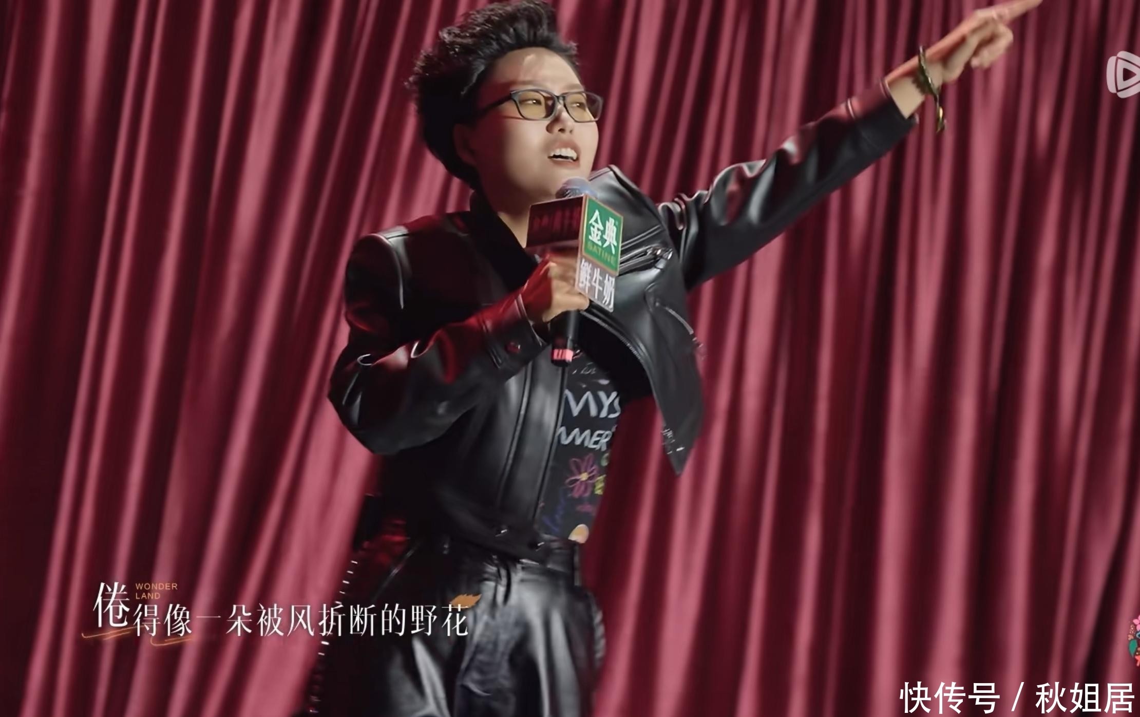 李雪琴身穿皮衣皮裤演绎《花火》,非论是激情如故动作,齐精确收复了汪峰的作风。